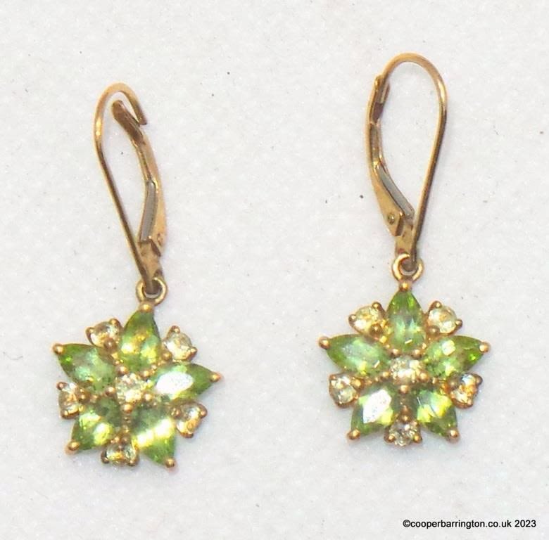 9ct Gold Green Cluster Peridot Clip Earrings