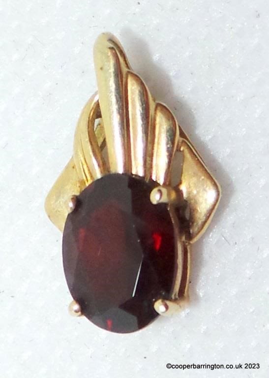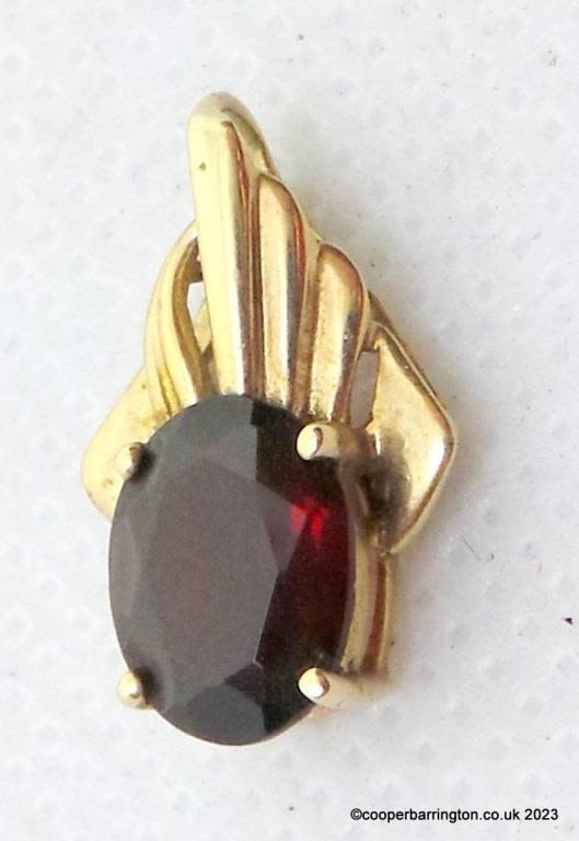 QVC 9ct Yellow Gold Garnet Pendant. Hallmarked .375. 1.2 gm.gross.