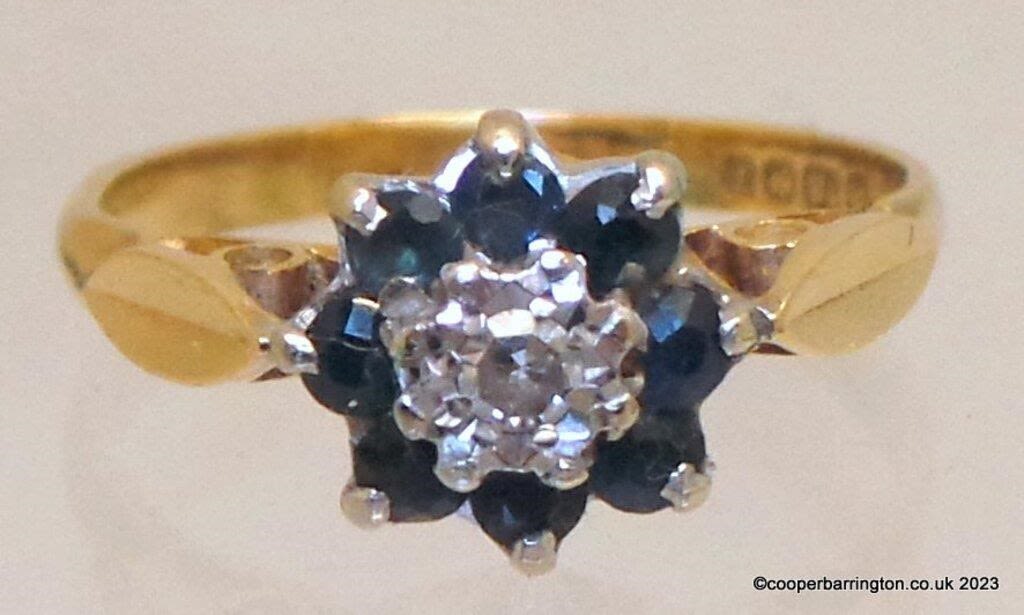 18ct Yellow Gold (.03 ct) Diamond & Sapphire Dress Ring. Hallmarked 18ct. Size I (8).