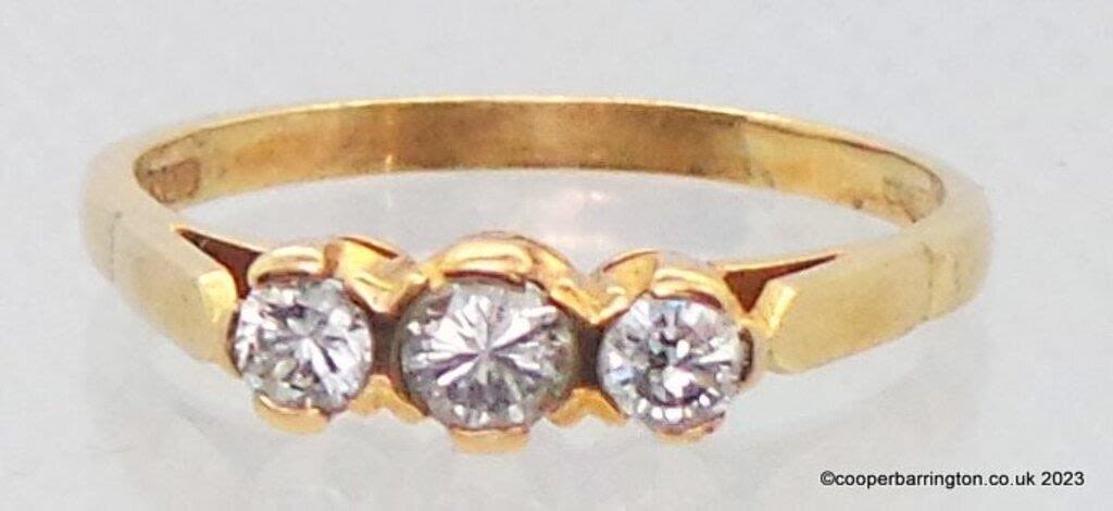 9ct Yellow Gold Mounted Cubic Zirconia Trilogy Ring. Hallmarked .Size P (16). 1.9 gm gross.