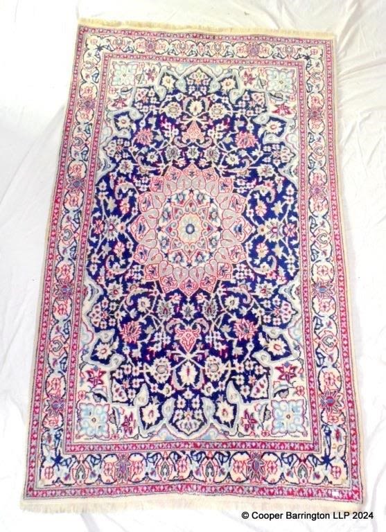 Persian Isfahan Rug. Finely Woven 100% Wool Blue/Red/Cream Size 48 x 82 inches.