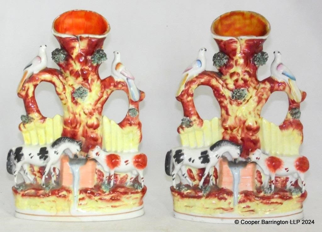 Antique Pair of Staffordshire ‘Good Companions’ Spill Vases. Late 19th Century. Height 26 cm. (2 Items)