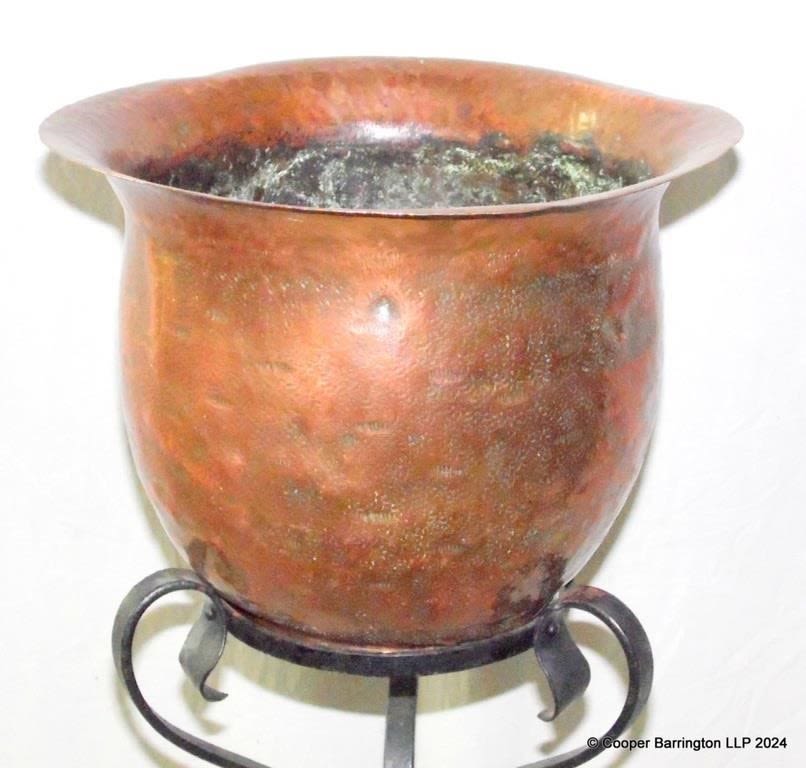 Tall Wrought Iron & Copper Art Nouveau Planter....