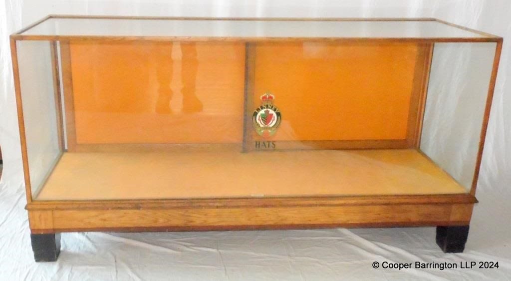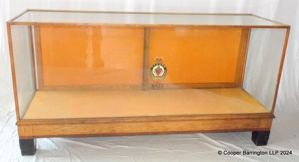 A Dudley & Co Ltd, London Large Oak Glazed Shop Counter Display Cabinet. Height 36 in. Width 70.25 in. Depth 22.75 in.
