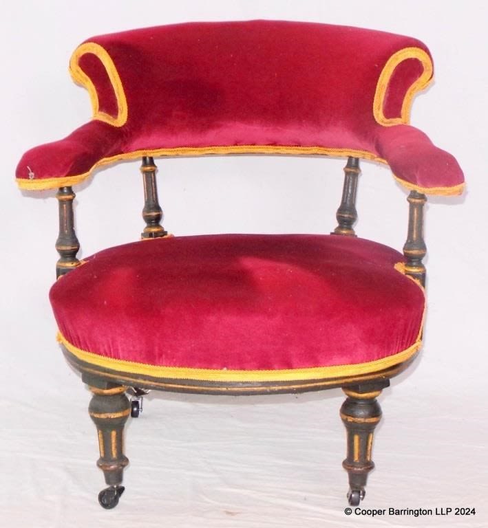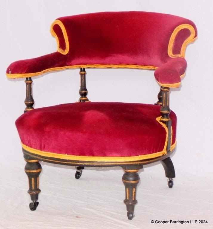 Victorian Ebonised and Gilt Tub Chair. Late 19th...