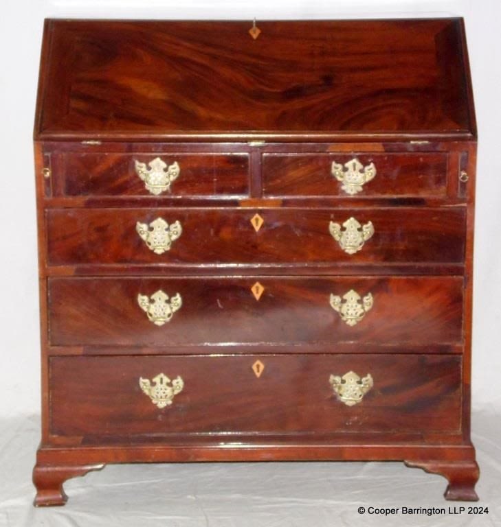 Georgian Mahogany Bureau. Late 18th Century. The fall...