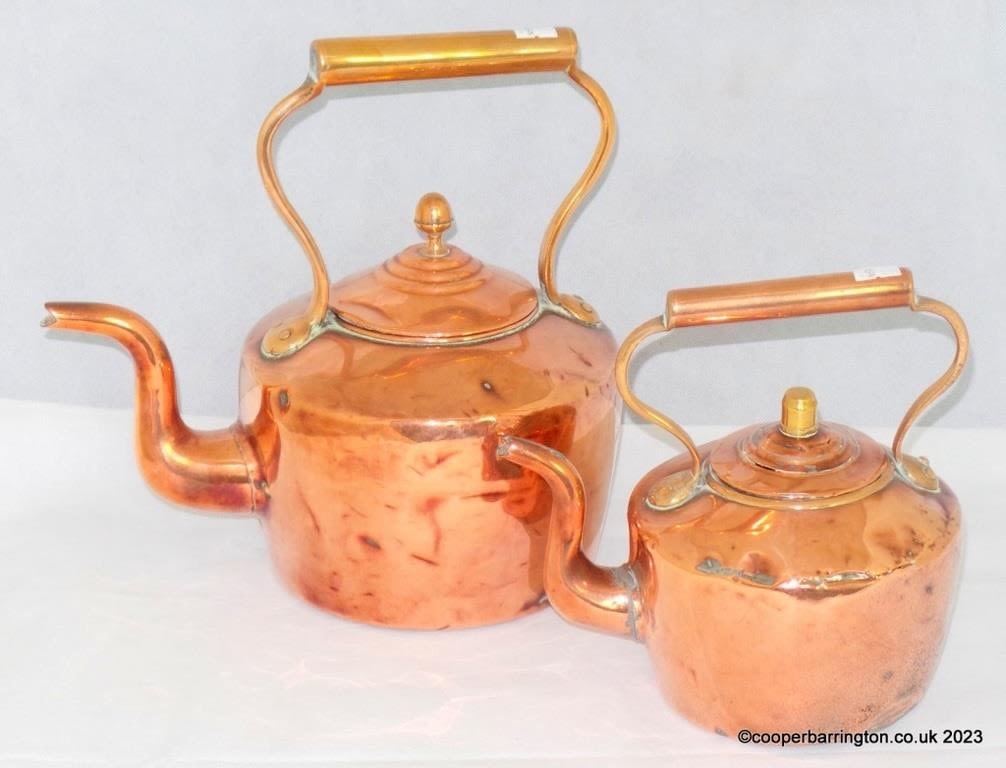 Two Antique Copper Kettles. Late 19th Century. Height 12 in & 9in. (2 items)