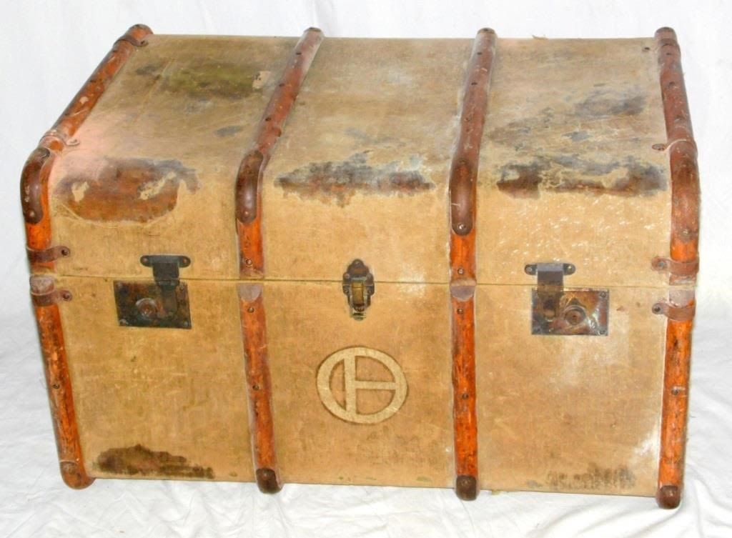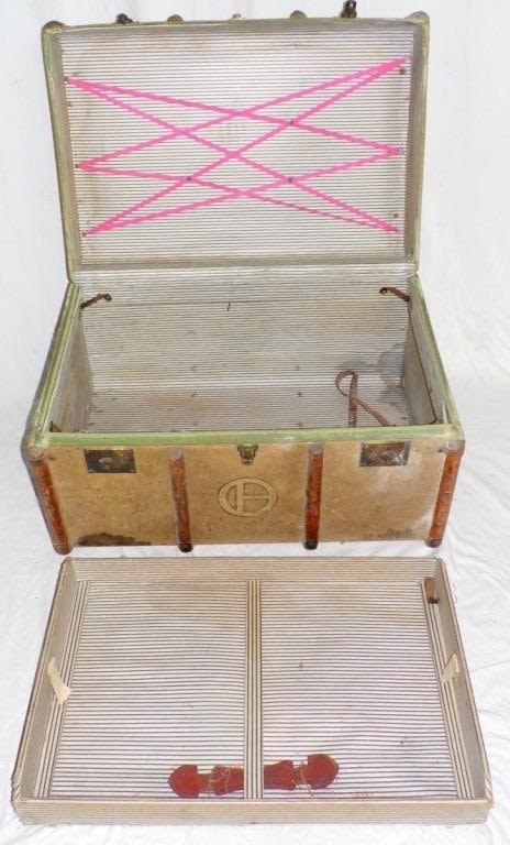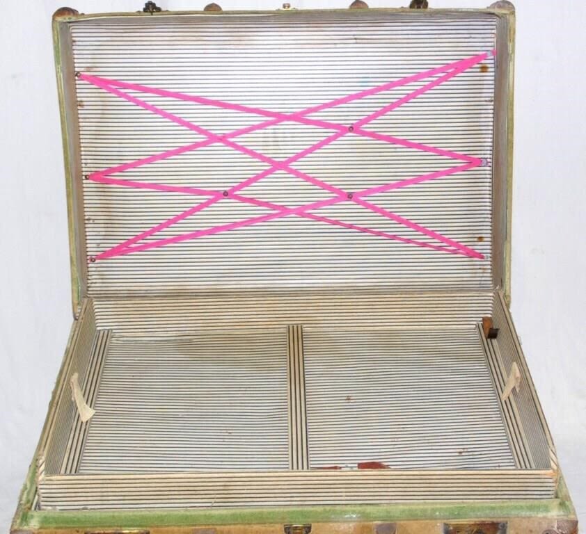 Antique Wooden Bound Fitted Steamer Trunk with LNER...
