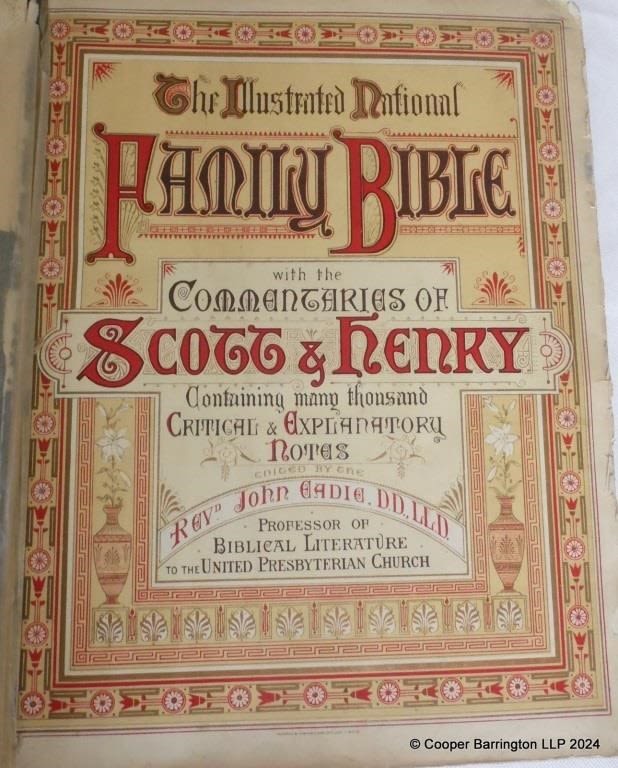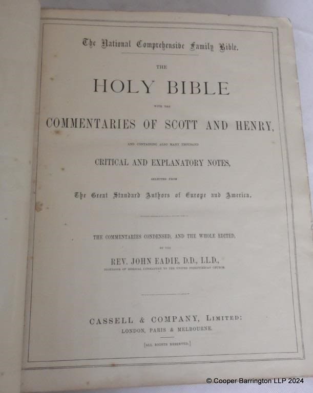 The National Comprehensive Family Bible. Mid 19th Century. The Holy Bible with the Commentaries of Scott and Henry and containing also many thousand critical and explanatory notes selected from The Great Standard Authors of Europe and America. Published by Cassell & Company.