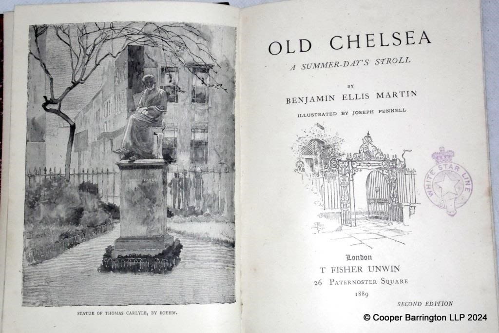 Oceania Interest.Benjamin Ellis Martin,Old Chelsea; A Summer-Day’s Stroll. Published by T. Fisher Unwin, 1889. Second Edition. Having White Star Line Library Stamps possibly from Adriatic, Celtic or Republic Liners.