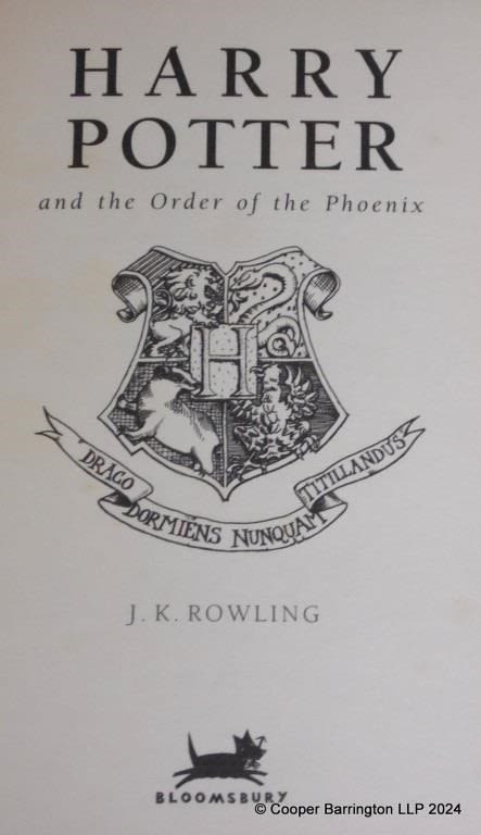 Harry Potter and the Order of the Phoenix First Edition. 1st printing – Children’s Yellow jacket. Unclipped with dust jacket.