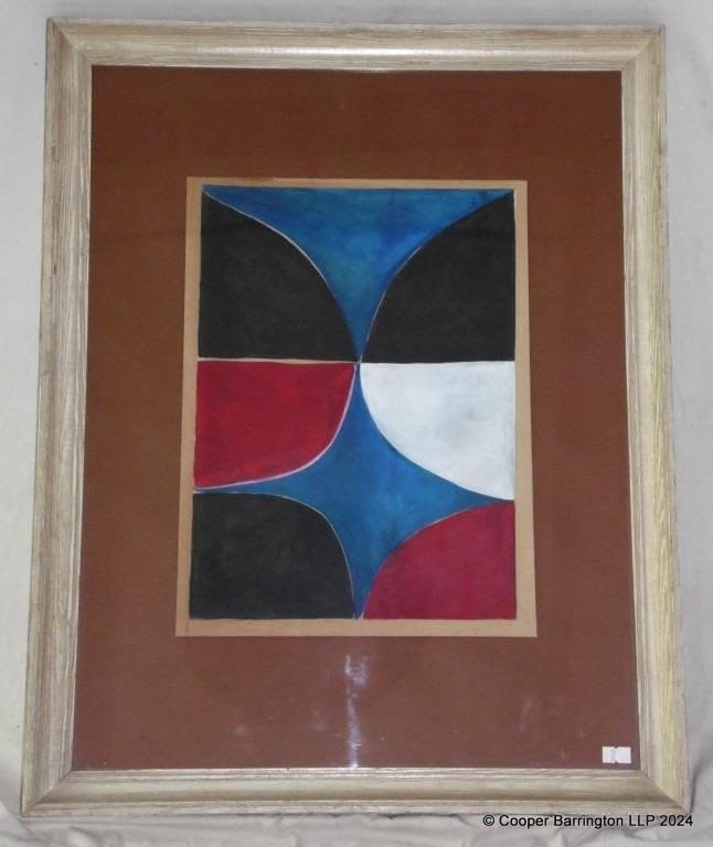Sir Terence Ernest Manitou Frost RA (1915-2003) .British abstract artist, who worked in Newlyn, Cornwall. Composition (Blue,Red,Black & White) collage and acrylic on thick paper mounted on card. Signed in pencil Terry Frost lower right card margin. Framed under glass 65 x 51 cm.