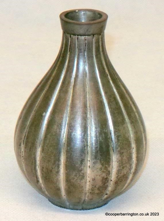 Vintage Just Andersen Pewter Ribbed Bottle Vase. No. 2642 Denmark Sculpture 1930’s Height 11cm.