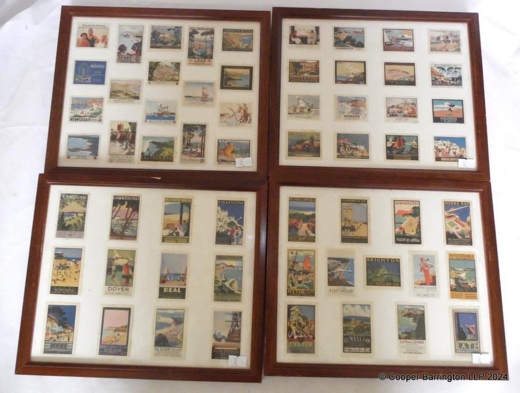 Collection of 59 Framed Miniature Railway Posters for GWR. LMS. Southern Railway.Framed under glass 30 x 25 cm. (4 Items)