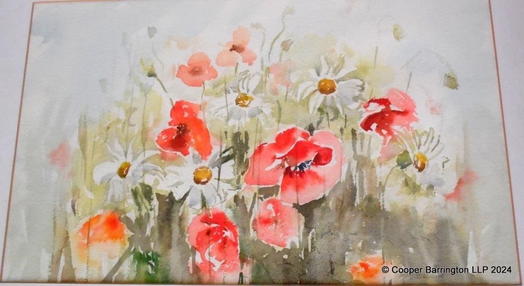 M Stothard Poppy Meadow Watercolour Painting. Signed in...