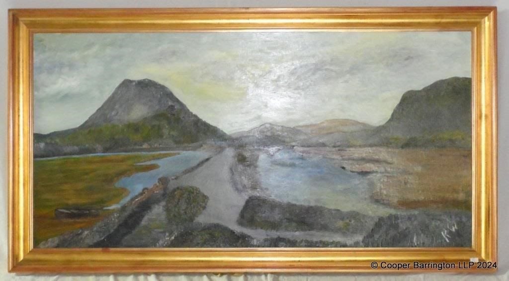 Follower of Kyffin Williams The Cob Porthmadoc Oil Painting on Board. Signed KW lower right. Framed 134 x 73 cm.