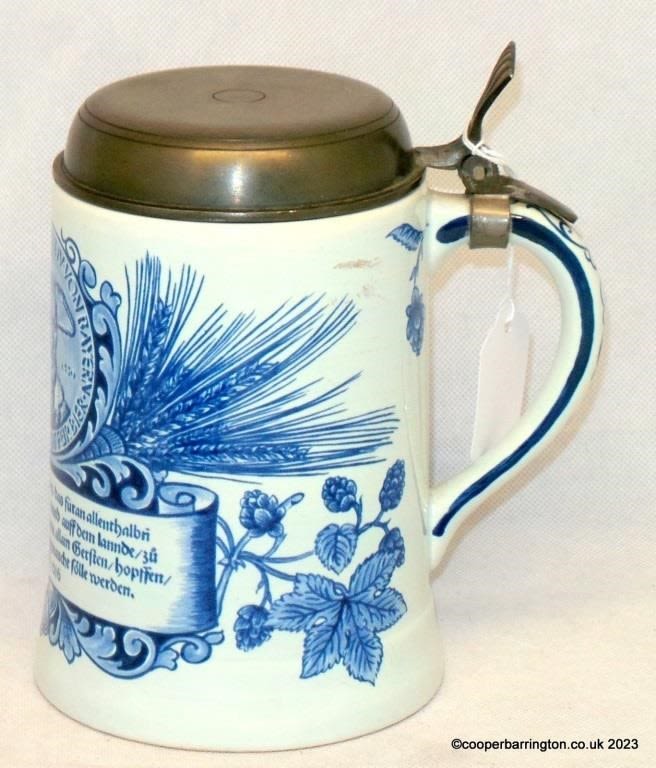 Delft Faience Beer Stein "Purity Law for Beer"....