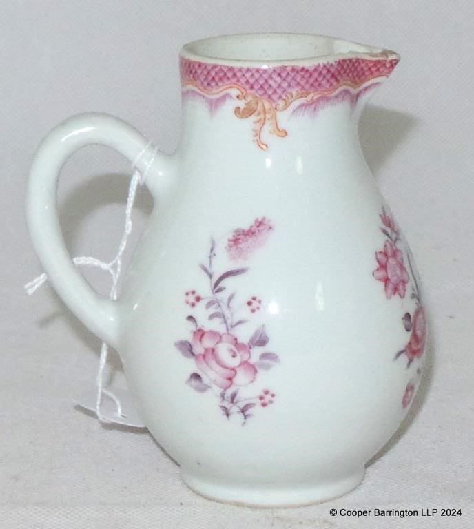 Antique Pearlware Sparrow Beak Jug. Early 19th Century. Hand painted folate decoration. Height 10.5 cm.