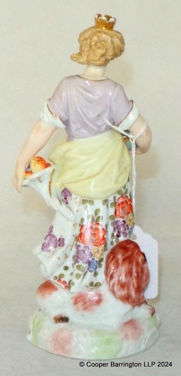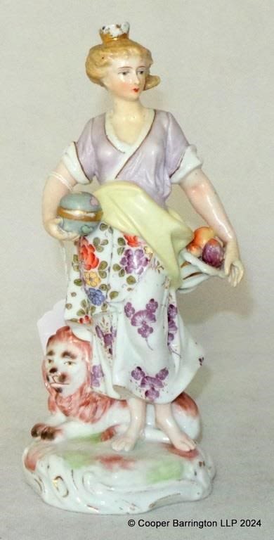 Antique Greiner & Holzapfel,Volkstedt Germany Porcelain Figurine of a Woman and Lion. Early 19th Century. Height 20.5 cm Underglaze blue R mark. f