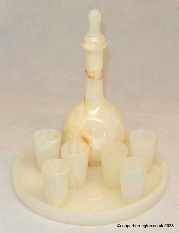 Vintage Carved Onyx Liquor Set Decanter, 6 Shot...