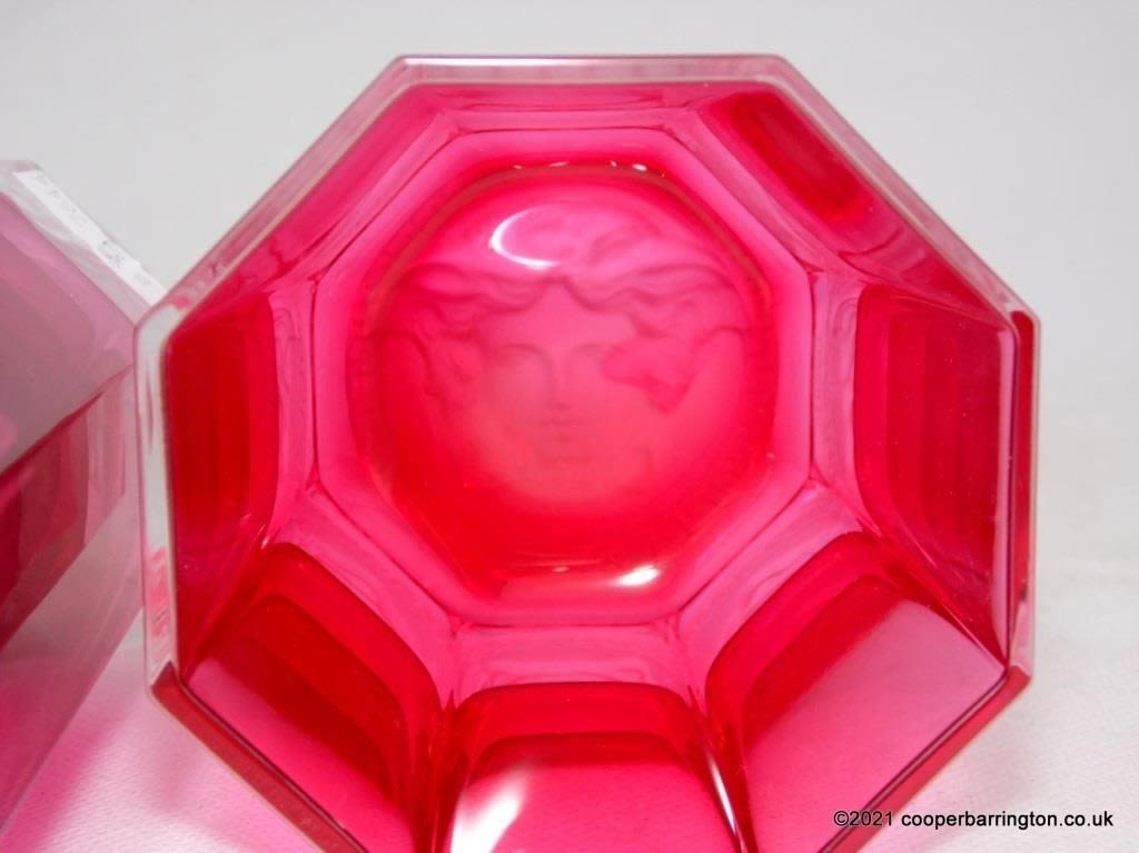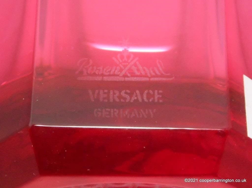 Versace Three-Dimensional Medusa Rosenthal Crystal LUMIÈRE RED Set of Two Glasses Whisky and Long Drink. Height 15 and 9 cm. (2 Items)