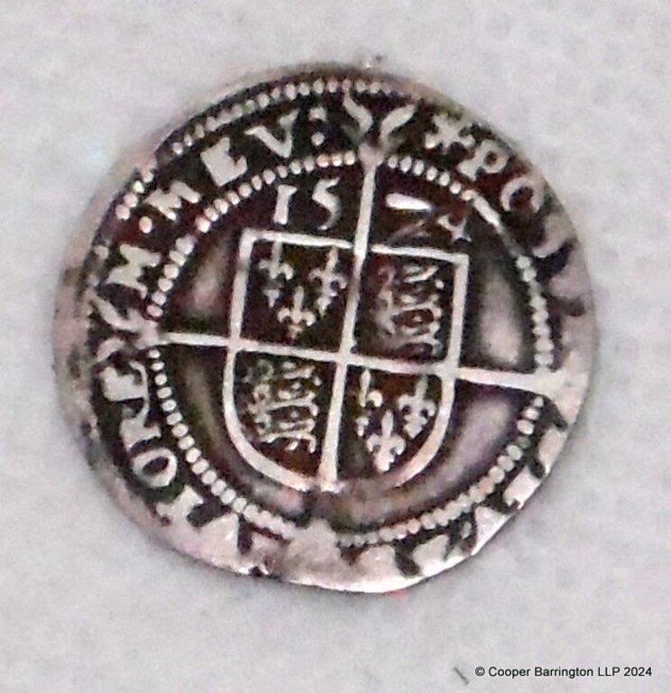 Scarce Tudor ELIZABETH I (1558-1603). Hammered Silver Threepence with Rose and Date. Greek Cross Mint Mark. Dated 1574. VF Dia.19mm.