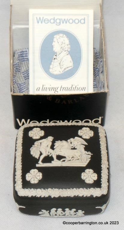 Vintage Wedgwood Black & White Jasperware Trinket Box/Cover with Classical Cameos. Boxed. 10 x 10 cm.