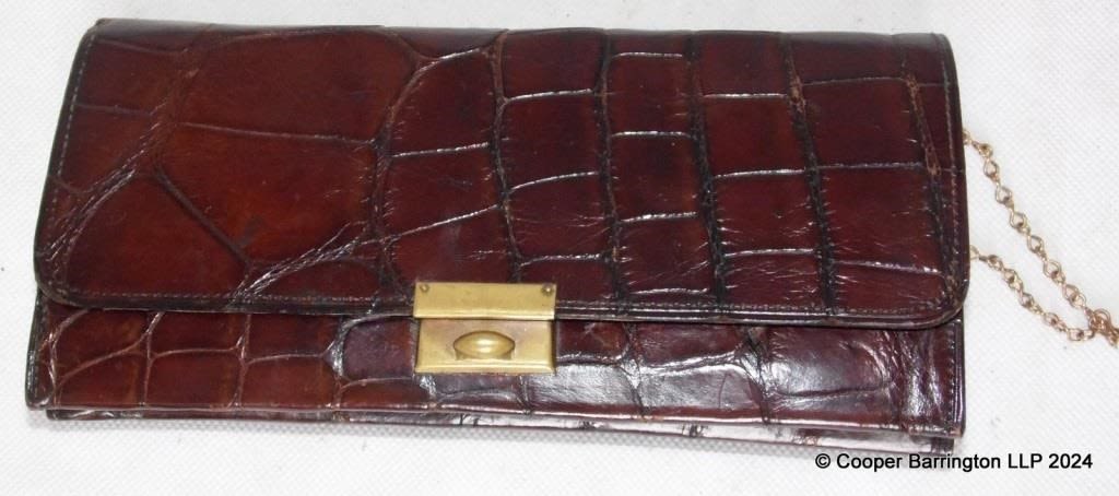 Vintage Crocodile Skin Purse with Original Small Mirror and Card Case in Crocodile Skin. 19.7 x 9.5 cm.
