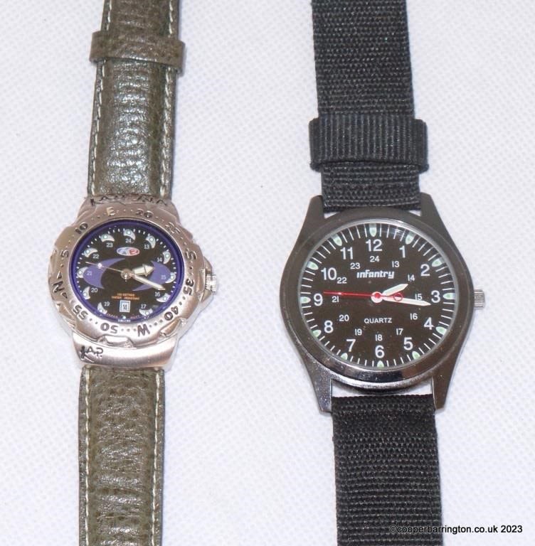 Infantry Mens Luminous Military Army Quartz Sport Watch. Working Order. Also a Kahuna K2 Ladies Luminous Sport Watch,100m water Resistant. (2 items) Working with New Batteries