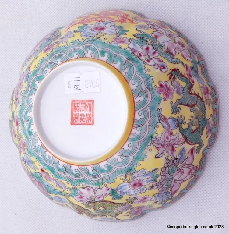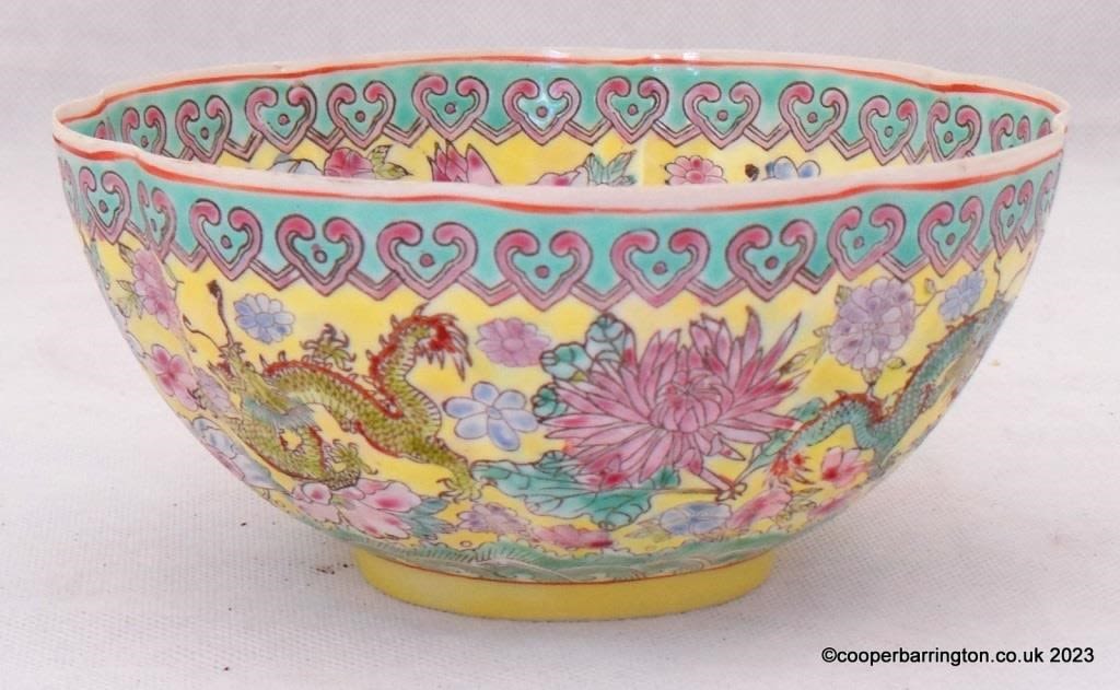 Chinese Famille Jaune Eggshell Dragon Bowl