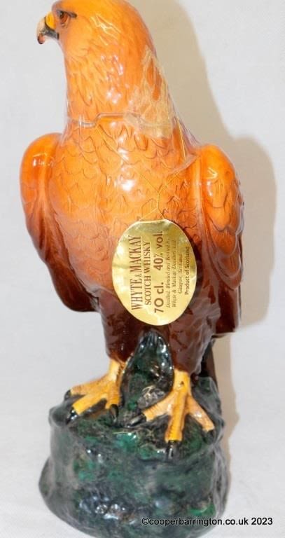 Royal Doulton White & Mackay Golden Eagle Ceramic Decanter.Scottish Birds of Prey Series,with Contents Strength: 40% Bottle Size: 75 cl Distillery / Blender: Blended Whisky. Complete with original gold label. Height 27 cm.