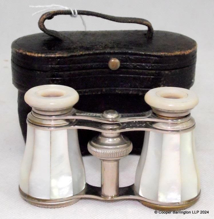 Fine Edwardian Mother of Pearl and Silver Plate Opera Glasses Marked Selfridge London. Complete with case. Early 1900.