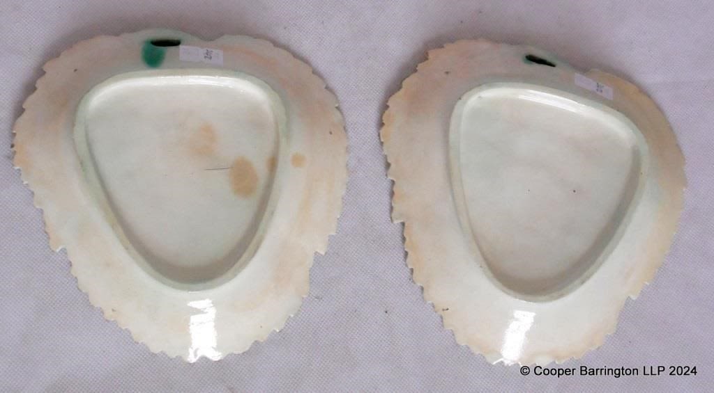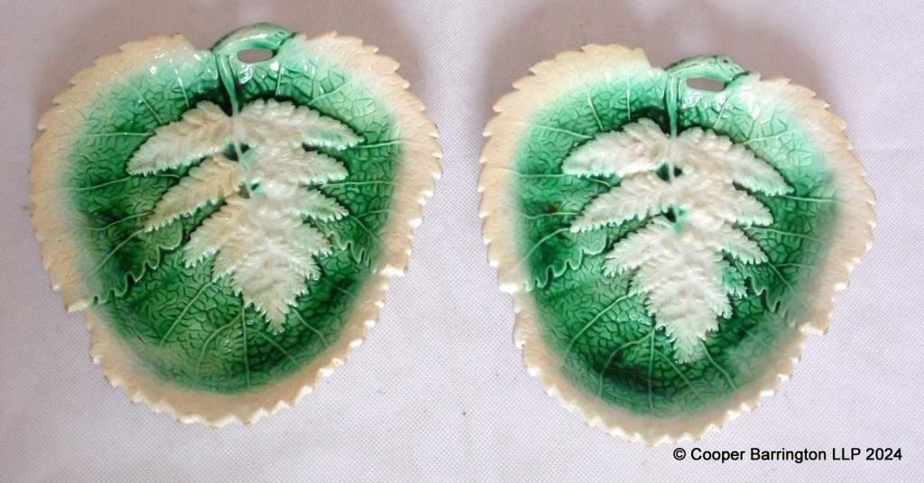 A Pair 19th Century English Majolica Fern Leaf Strawberry Dishes. 17 x 16.5 cm. (2 Items)