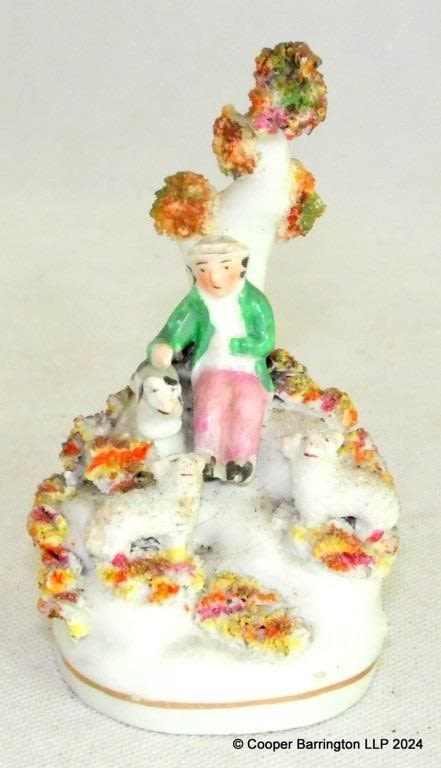 Antique Staffordshire Dudson Sitting Shepherd Figurine. Circa 1840s. Height 11 cm.