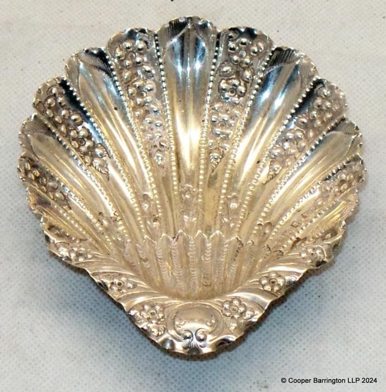 Edwardian Sterling Silver Shell Shaped Trinket / Butter Dish by (Henry Atkin) Atkin Brothers. Hallmarked Sheffield 1909. 60.7 gm.