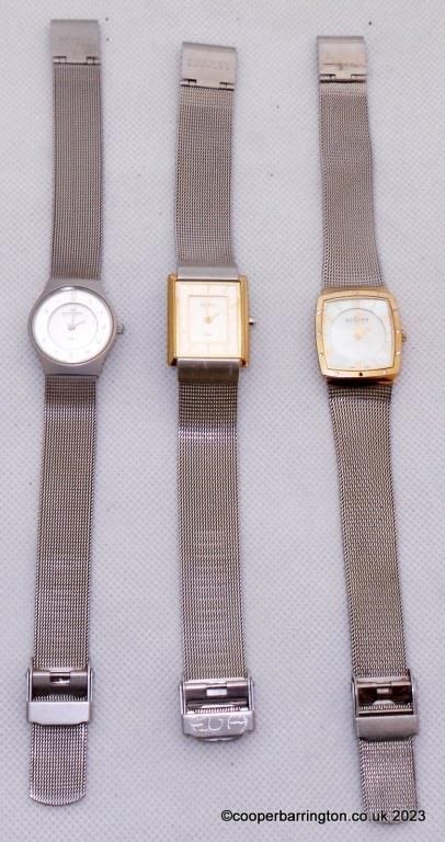 Skagen Denmark Ladies Quartz Wristwatches with Mesh Bracelet Straps. (3 Items) Working with new batteries
