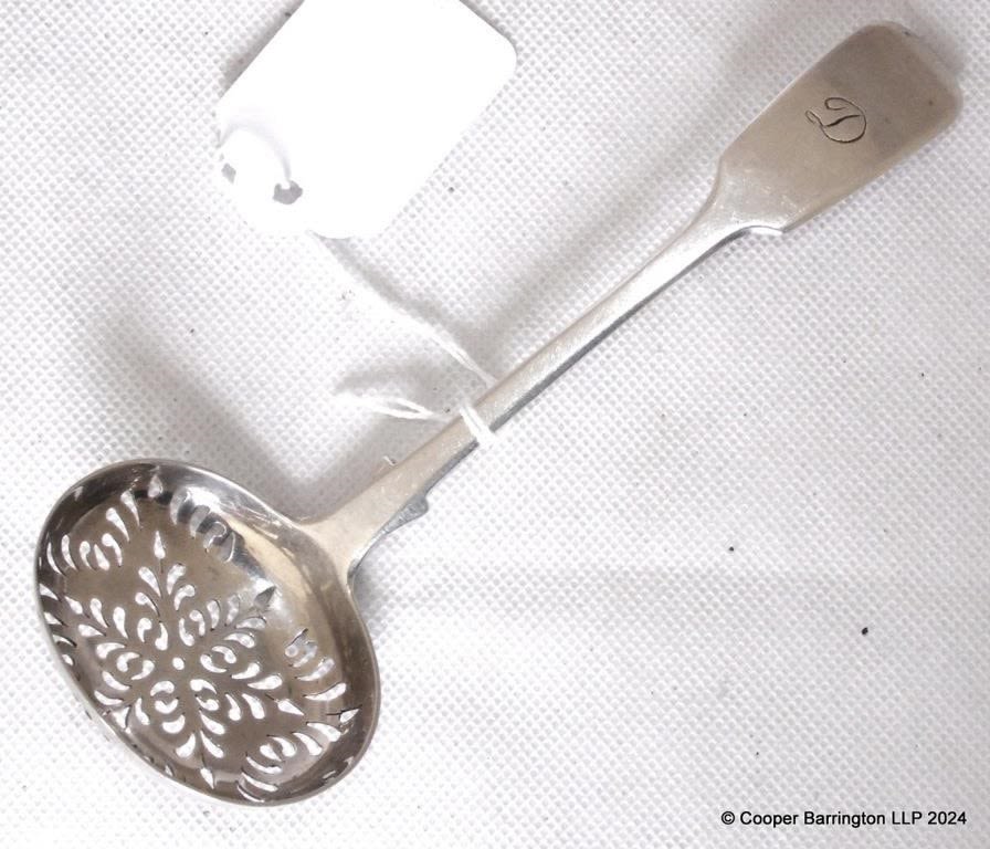 Victorian Sterling Silver Sifter / Fruit Strainer Ladle by John James Whiting. Hallmarked London 1838. Monogramed D. 45.2 gm.