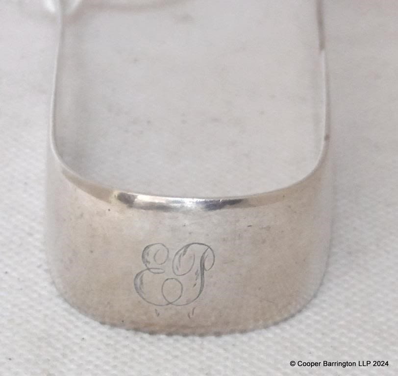 Victorian Sterling Silver Sugar Tongs by John Walton. Hallmarked Newcastle1858. Monogramed EP. 47.2 gm.