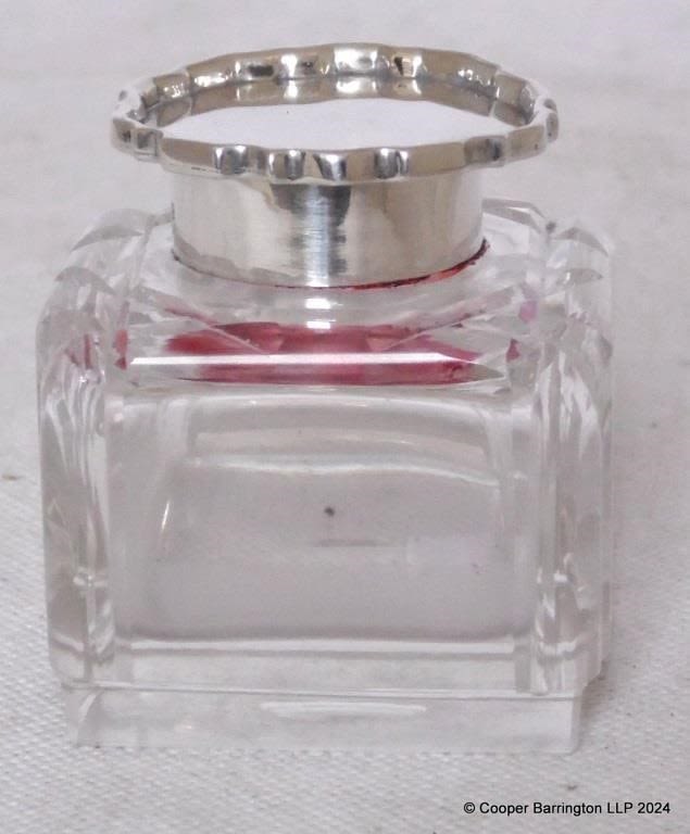 KGVl Sterling Silver Mounted Cut Crystal Inkwell. Hallmarked...