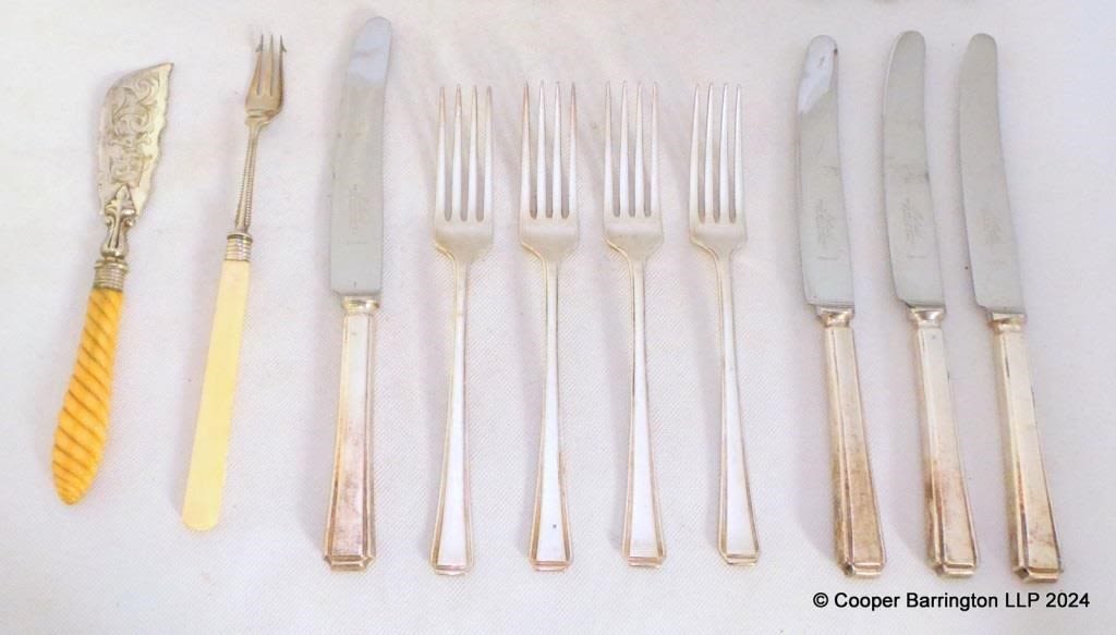 Elkington & Co Silver Plated Fish Knives & Forks with Registration Marks for 28th March 1872. Plus Silver Plated Pickle Fork. Butter Spreader. Hiram Wild Knives and Forks. (21 Items)