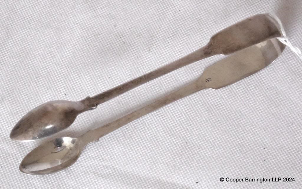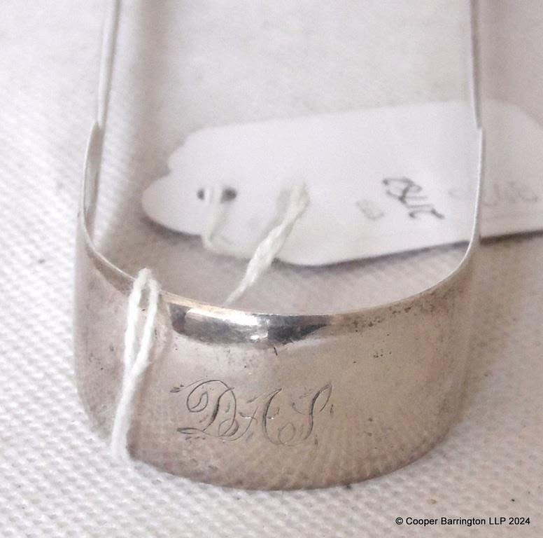 George III Sterling Silver Sugar Tongs by Joseph Barnard. Hallmarked London 1803. Monogramed DAL. 33.5 gm