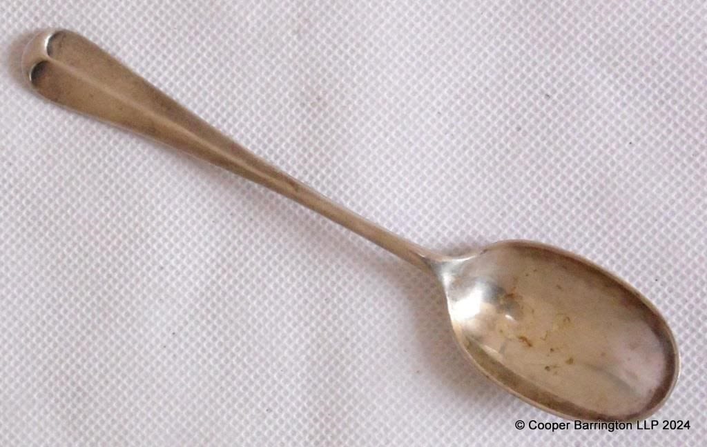 KGVl Sterling Silver Rat Tail Teaspoon By William Hutton & Sons Ltd. Hallmarked Sheffield 1933. 21.5 gm.