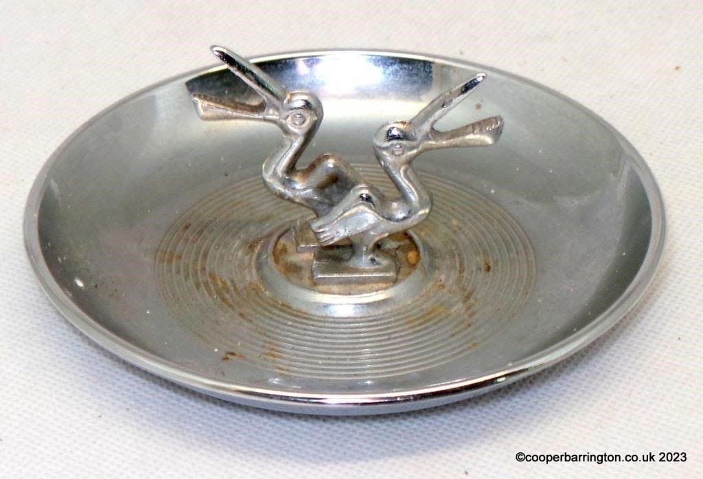 Art Deco A.Hamilton New York City, Pincherette Chromium Toucan Ashtray. Circa 1930s. Diameter 11 cm.