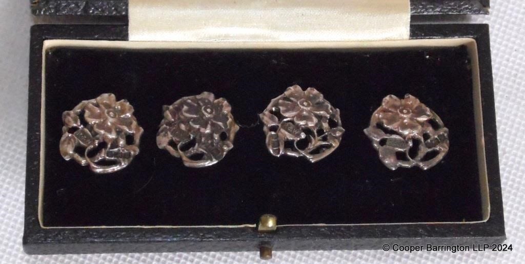 Cased Set of Four Art Nouveau Sterling Silver Buttons by Reynolds & Westwood. Hallmarked Birmingham 1901. (4 items)