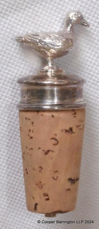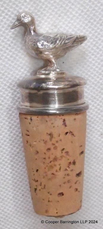 Asprey & Co Ltd London Sterling Silver ‘Duck’ Cork Bottle Stopper (Unused). Hallmarked London 1962.