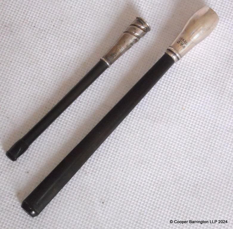 KGV Sterling Silver Cheroot Holder by L & A Orlick. Hallmarked Chester 1922. Also one other cigarette holder marked Sterling Silver. (2 Items)