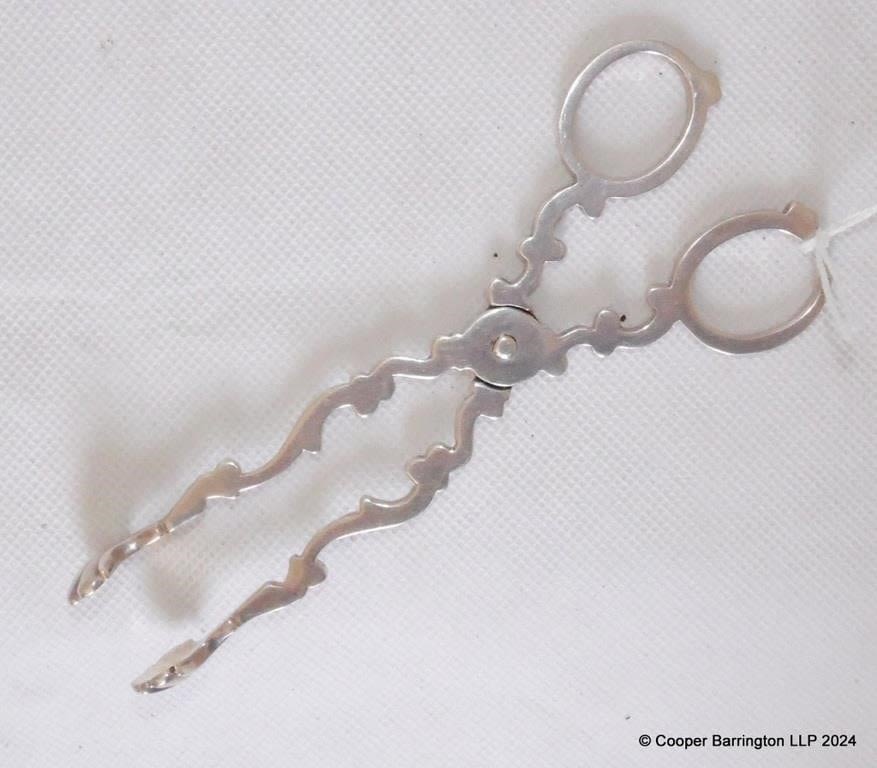 KGVI Sterling Silver 18th Century Style Sugar Nips by Josiah Williams & Co. Hallmarked London 1934. 28.1 gm. Length 13.7 cm.