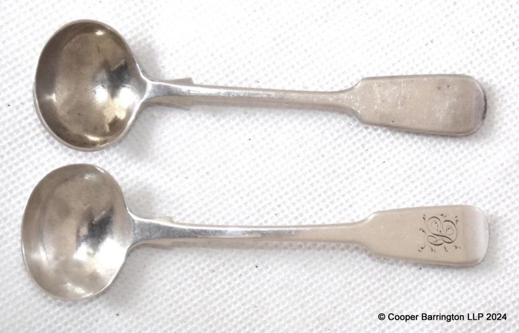 Two Victorian Exeter Sterling Silver Sauce Spoons. Hallmarked Exeter 1841/1877. (2 items)