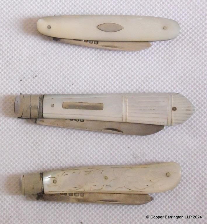 KGV Sterling Silver and Mother of Pearl Fruit Knives by William Needham.John Yeomans Cowlishaw.Hallmarked Sheffield 1921/25/27 (3 Items)