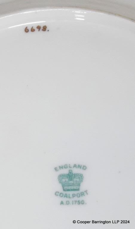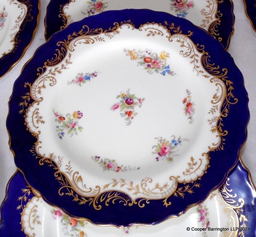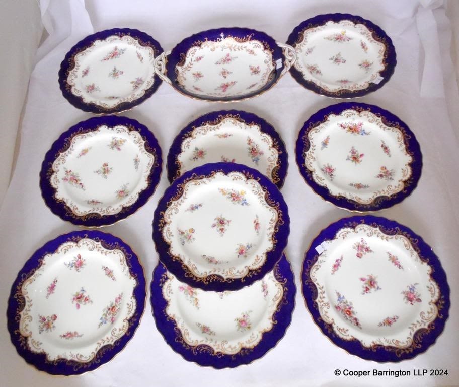 Antique Coalport Porcelain Colbalt Blue/Gilt Plates. Circa 1880s. Hand coloured folate decoration. Pattern No. 6698. (10 Items)